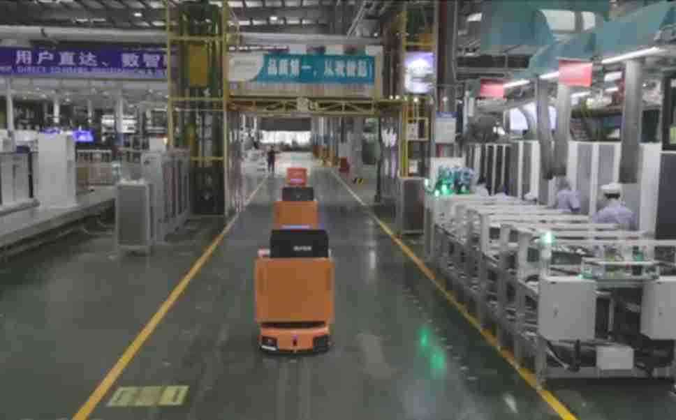 为车载冰箱物流配送打造的智能解决方案,,包含产中物流通过潜伏举升AMR搬运至线边,,,,产后成品物流智能仓储,,,流程包含产中物流智能齐套入库,,,线边安灯叫料AMR智能配送至线边,,,,成品入库、、、、出库,,,通过无人堆高车机器人,,智能仓储管理替代人工作业管理,,,实现更高存储、、、、更高效率、、、、更具柔性化的解决方案。。。。