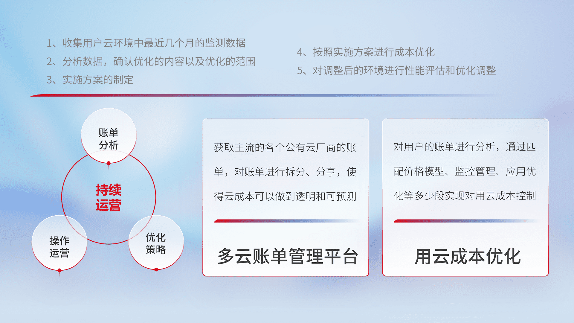 运用智能化工具分析云资源,,提供日常费用可视化工具,,,,自动账单拆分,,,成本优化云上费用,,降本增效。。
